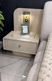 در کنار تخت، دو پاتختی مدرن طراحی شده که روی پایه سنگی مینیمال قرار گرفتهاند. نکته منحصربهفرد این مدل، پشتزمینهی پاتختیهاست که از امدیاف با روکش وکیوم درجه یک ساخته میشود و قابل سفارش در طرحهای متنوع است. این طراحی باعث میشود دیوار پشت تخت جلوهی یکدست و هماهنگی داشته باشد.