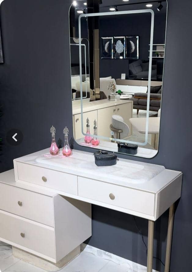 🔹 میز آرایش مدرن با آینه تاچدار: