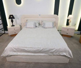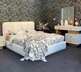 سرویس خواب دونفره مدرن شامل تخت خواب کف تخت فلزی با پایه های متصل، آینه قدی و فایل با صندلی و دو عدد پاتختی می باشد.